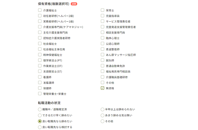 「資格はないけれど、介護や福祉に興味がある」といったこれから業界に入ってみたい人から、「以前は業界にいたけど、ブランクがあって不安」といった業界に再チャレンジしたい人、「今の経験を活かして、年収アップ、また大手にいきたい」などバリバリ経験を積まれてキャリアアップを目指す人など、幅広い人が利用できます。