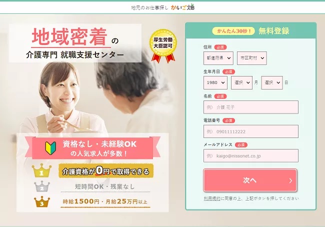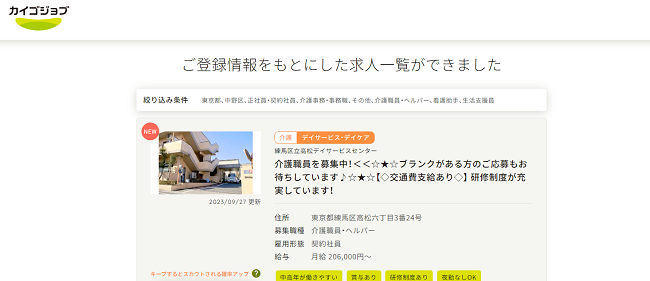 - カイゴジョブから求人に応募