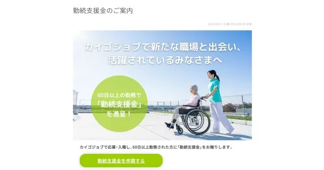 カイゴジョブで応募し入職が決まれば、勤続支援金が貰えます。