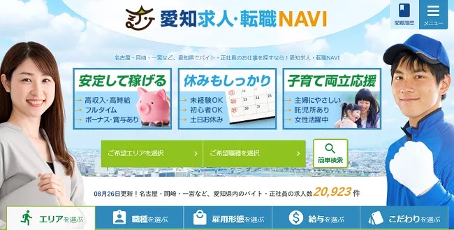 - 愛知県内でさまざまな業種の求人をチェックしたい人