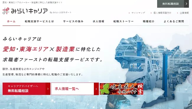 地方中核都市である名古屋市の求人がメインではありますが、その他の地域の求人も取り扱っていますので、都市部以外の転職活動にも活用できます。