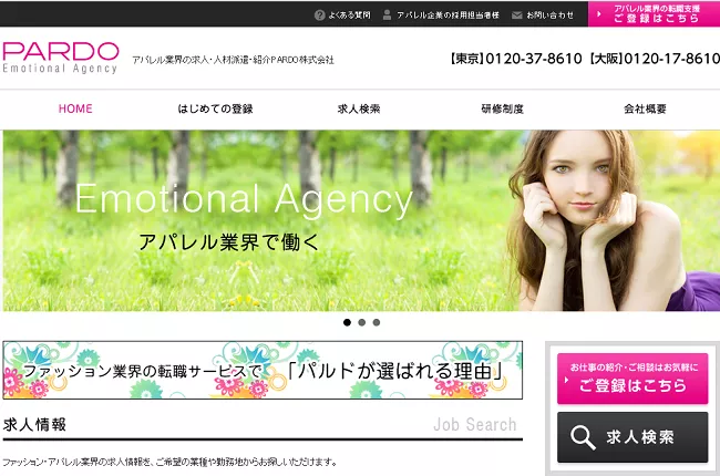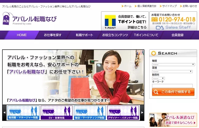 一般的な転職サイトと比べて、アパレル業界の求人を多数紹介しているので、なかなか転職先が見つからないとお困りの方にもおすすめ。