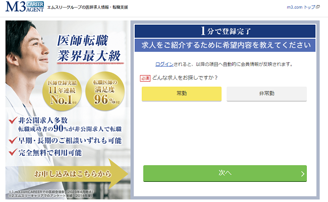言わずと知れた人材業界最大手リクルートのブランドを冠した、医師専門の転職サービスです。