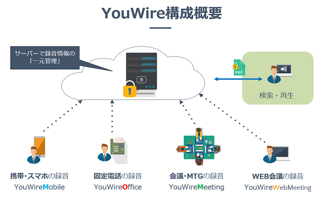 それに対して「YouWire」は、あらゆるビジネス音声を蓄積/活用できるメリットがあります。