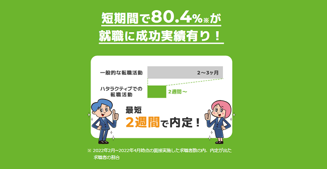 ハタラクティブでは最短2週間で内定を獲得した転職者がいる実績もあります。