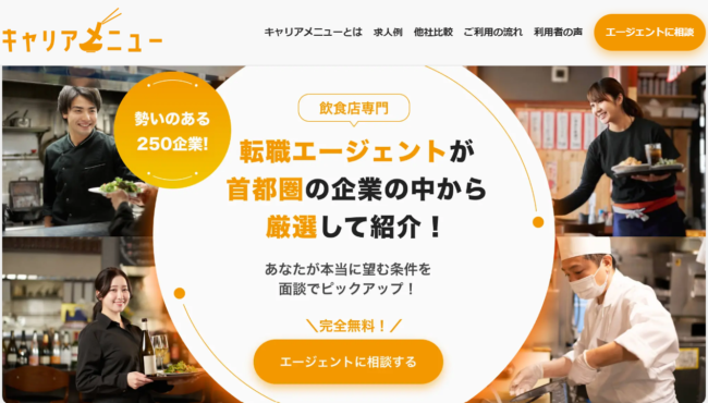 キャリアメニュー首都圏を中心に飲食業界の求人を紹介している転職エージェントです。