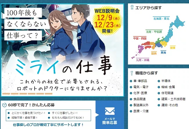 またメイテックネクストでしか取り扱っていない独占求人も多数取り扱っています。