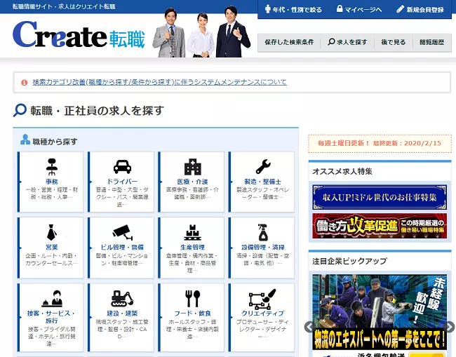 求人数だけではなく、求人している職種にも幅が広く、「営業」「企画」「販売」「医療系」など大きく17もの職種が求人対象になります。