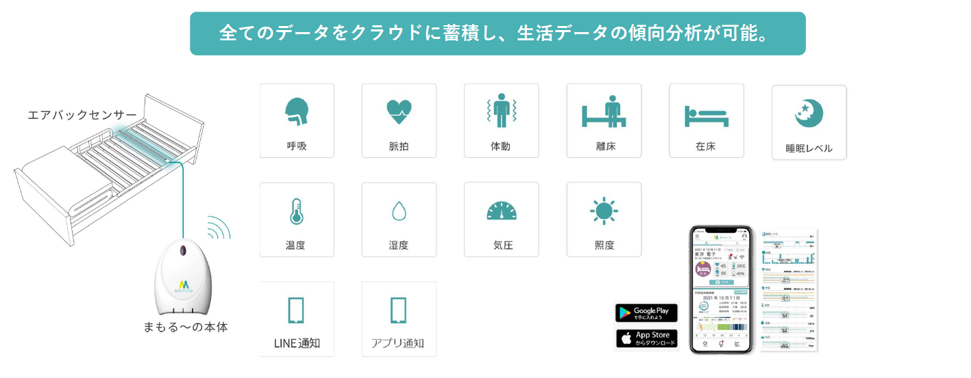 「まもる~の」というIoT機器をベースに、「介護見守りプラットフォーム」を提供しています。
